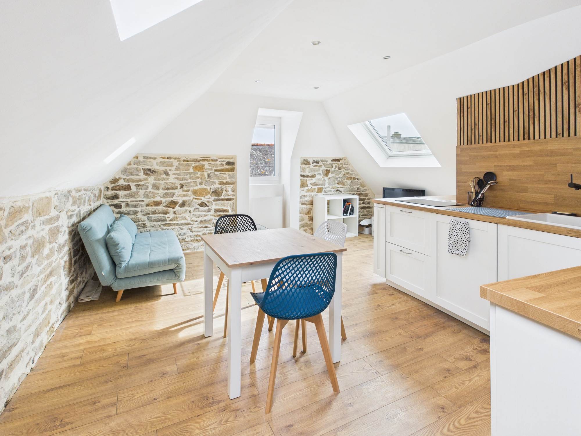 Appartement à Concarneau qui possède 1 chambre(s) et Capacité pour 1 personnes. Logement de 55 m². Elle dispose de accès internet (wifi), chauffage électrique. La cuisine américaine, à induction