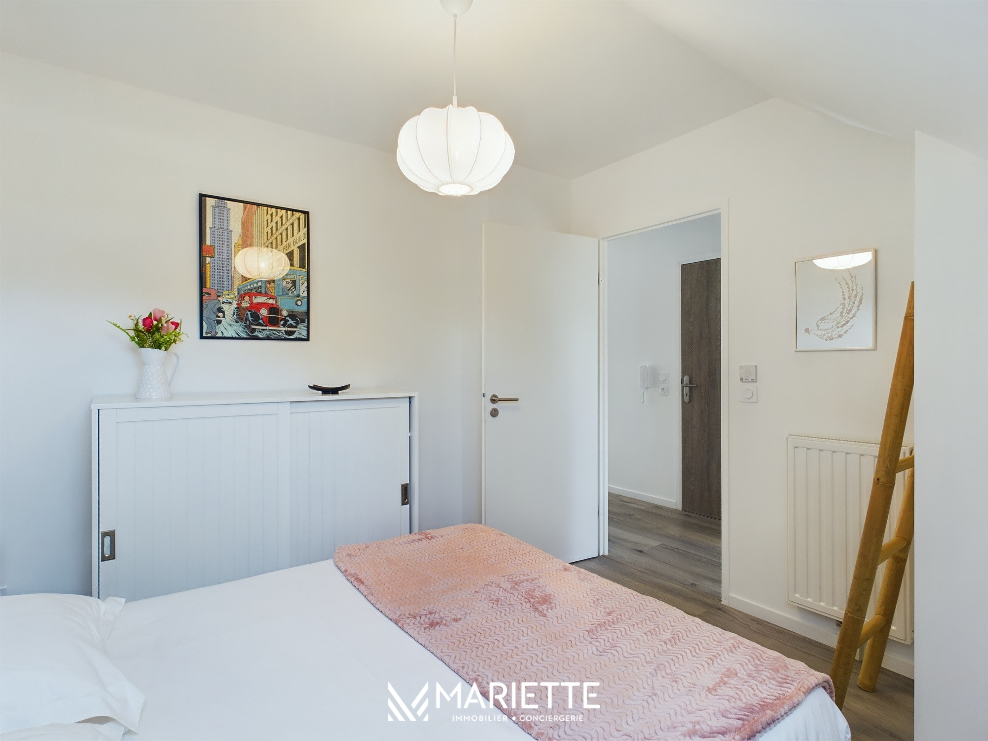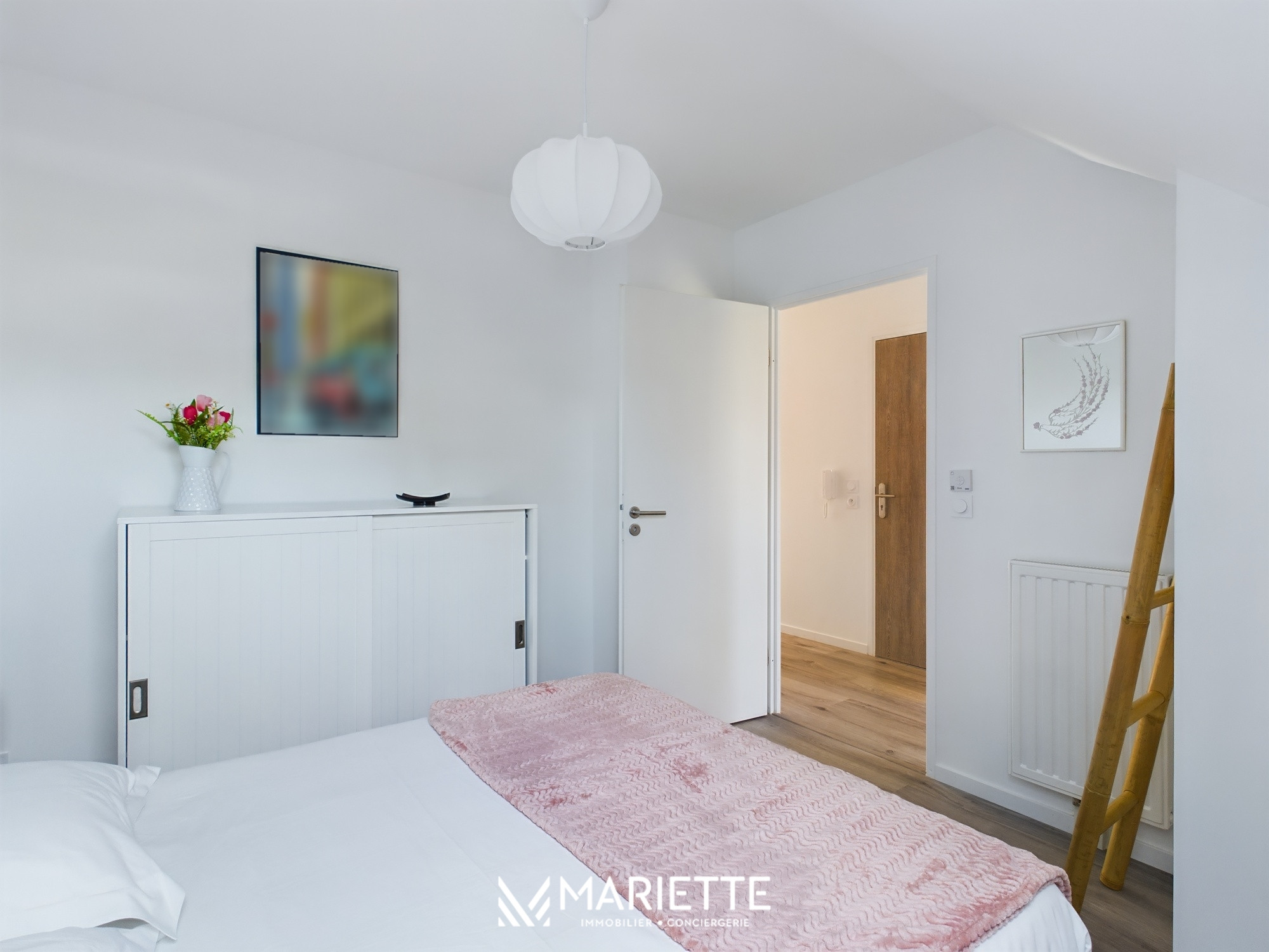 Un espace de vie lumineux, des matériaux de qualité, une cuisine entièrement équipée (avec une cafetière à filtres et une Nespresso), tout y est pensé pour rendre votre séjour exceptionnel. D'une surface de 60 m² il offre une entrée, un grand salon-séjour-cuisine, une belle chambre avec son lit king-size, une salle d’eau avec douche à l’italienne, une buanderie et un WC séparé.