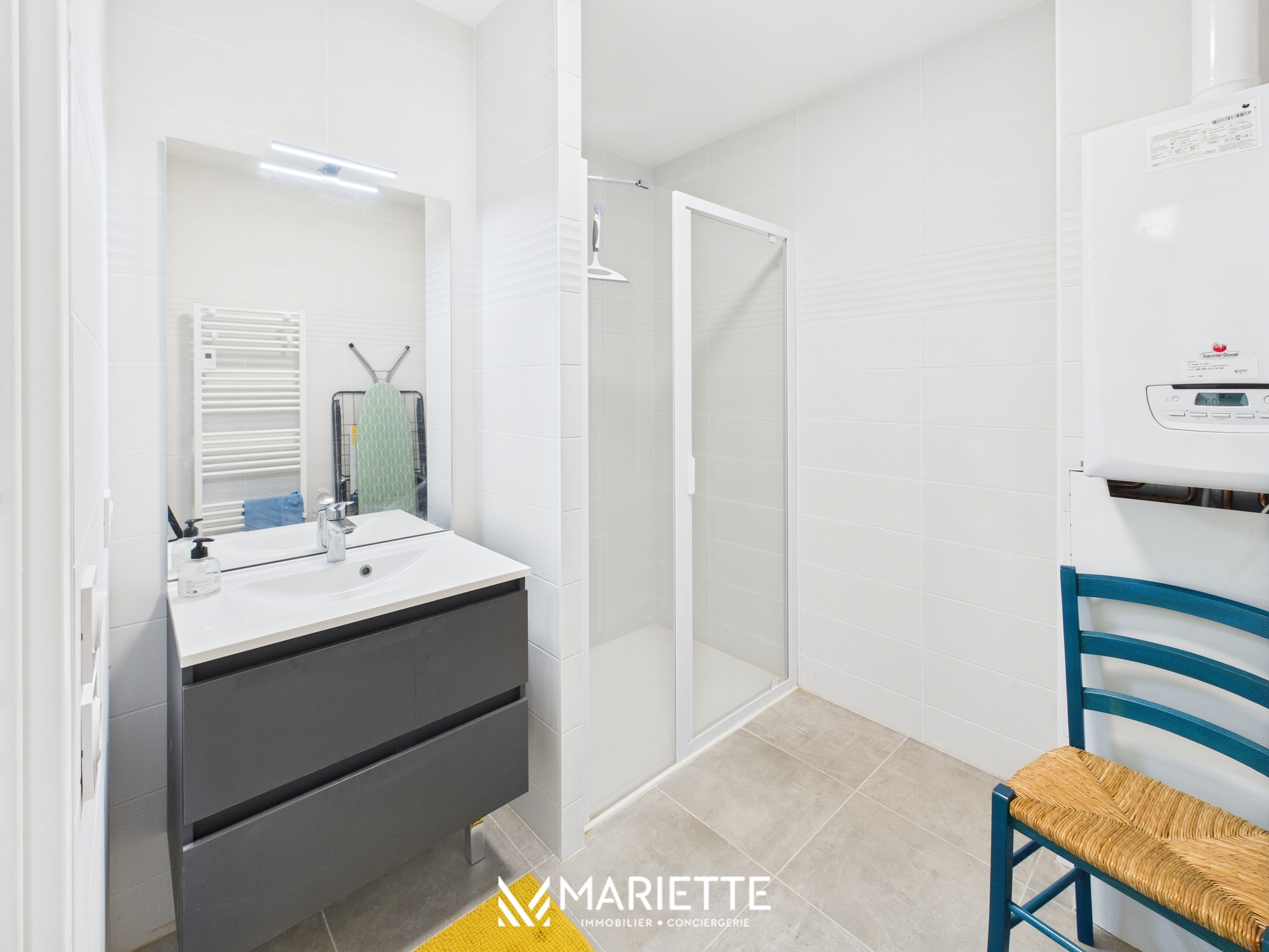 Un espace de vie lumineux, des matériaux de qualité, une cuisine entièrement équipée (avec une cafetière à filtres et une Nespresso), tout y est pensé pour rendre votre séjour exceptionnel. D'une surface de 60 m² il offre une entrée, un grand salon-séjour-cuisine, une belle chambre avec son lit king-size, une salle d’eau avec douche à l’italienne, une buanderie et un WC séparé.