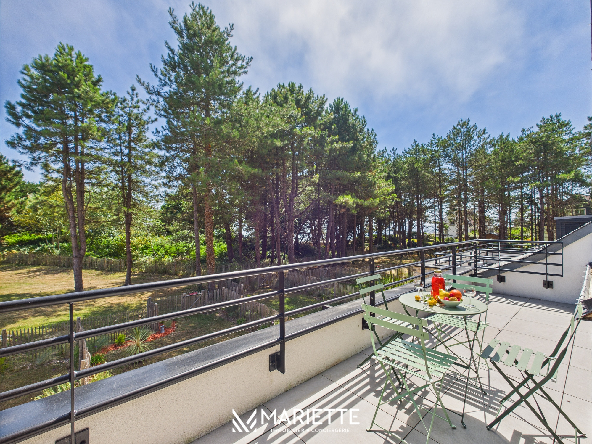 L’atout charme de l’appartement ? Une terrasse exposée au soleil, offrant une vue apaisante sur la mer, encadrée par les majestueux pins qui entourent la résidence.