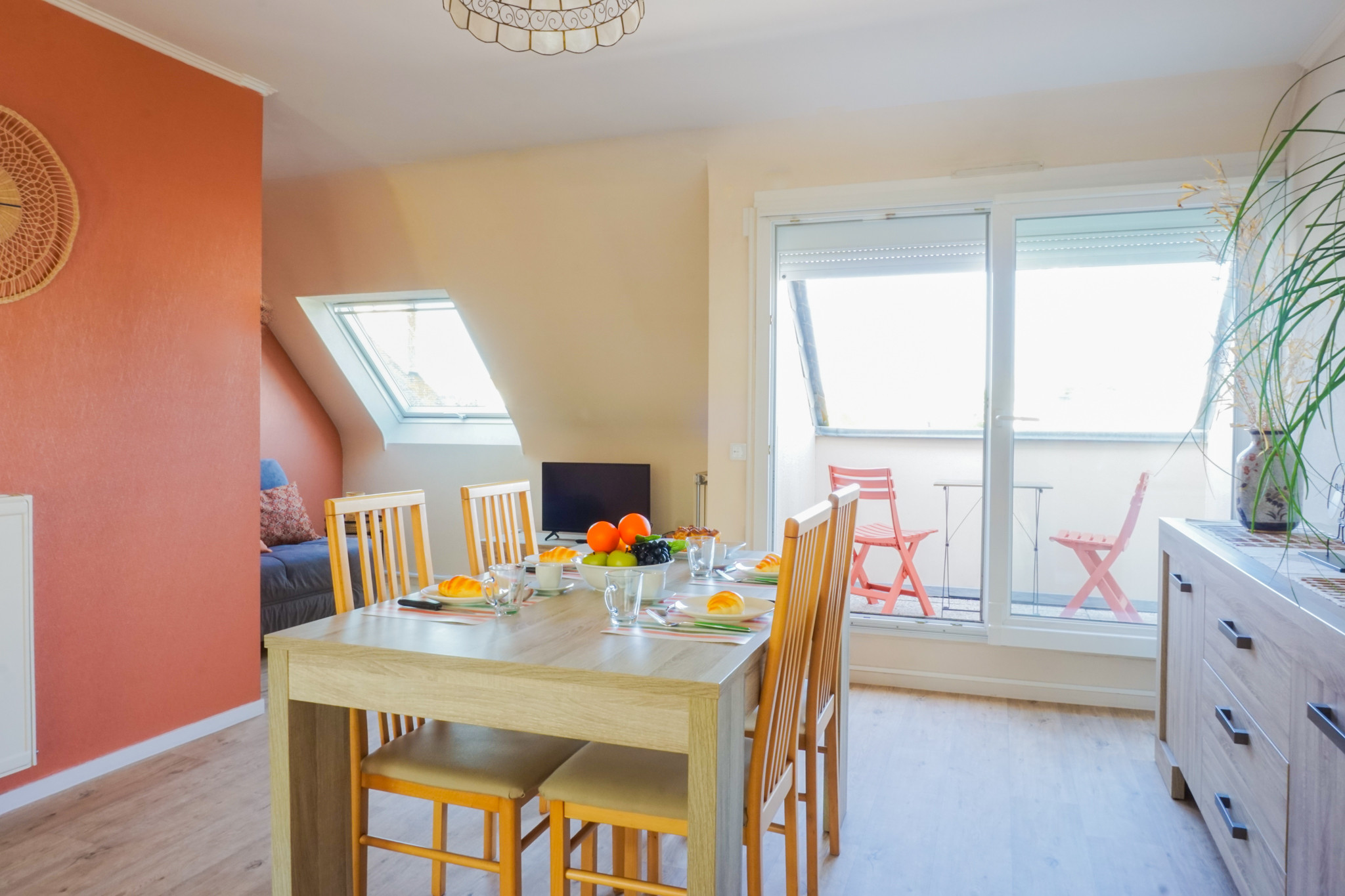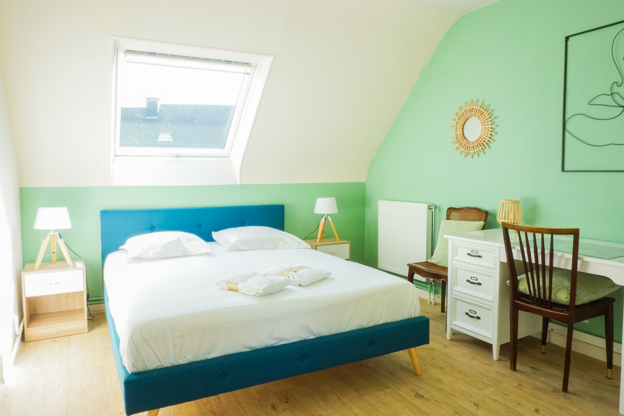 Puis, un bel espace salon/salle à manger s’offre à vous, donnant sur un agréable balcon, où vous pourrez savourer votre petit déjeuner tout en profitant du soleil breton. Découvrez ensuite l’espace nuit composé d’une literie très confortable (matelas Emma), d’un bureau ainsi que d’un dressing, pratique pour disposer vos effets personnels.