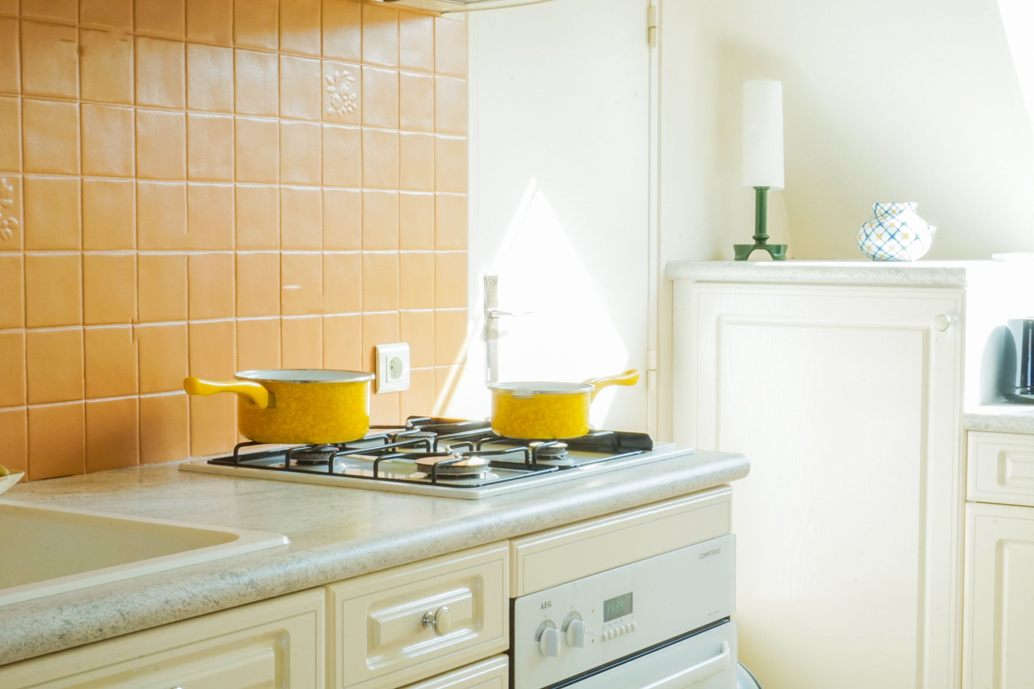 Sur votre gauche, vous trouverez une belle cuisine équipée et ouverte (cafetière à filtre), où vous pourrez vous concocter de délicieux repas. Une petite buanderie avec machine à laver est adjacente à cet espace.