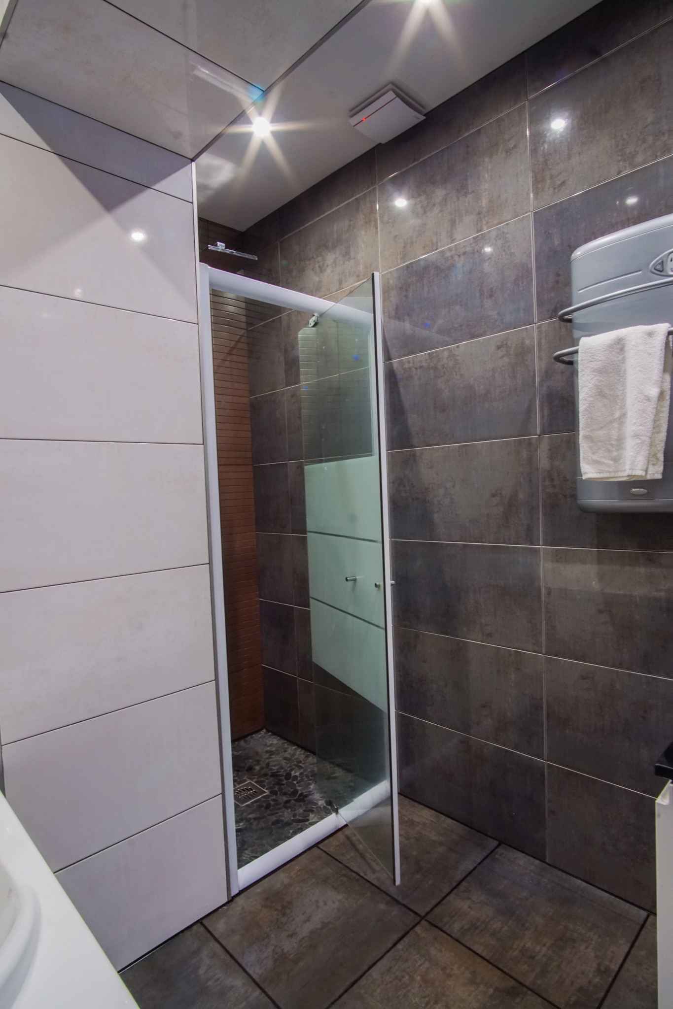 Sur votre gauche, vous découvrirez une chambre soigneusement aménagée, offrant une atmosphère paisible. Dans la continuité, vous trouverez, une salle de douche avec toilettes.