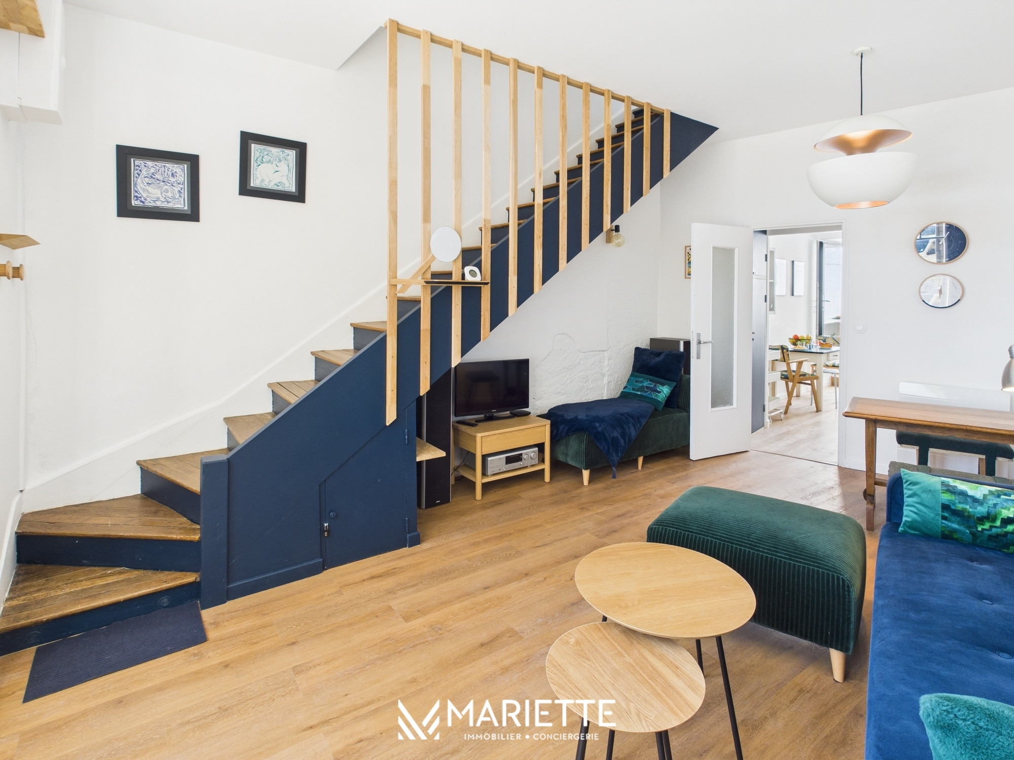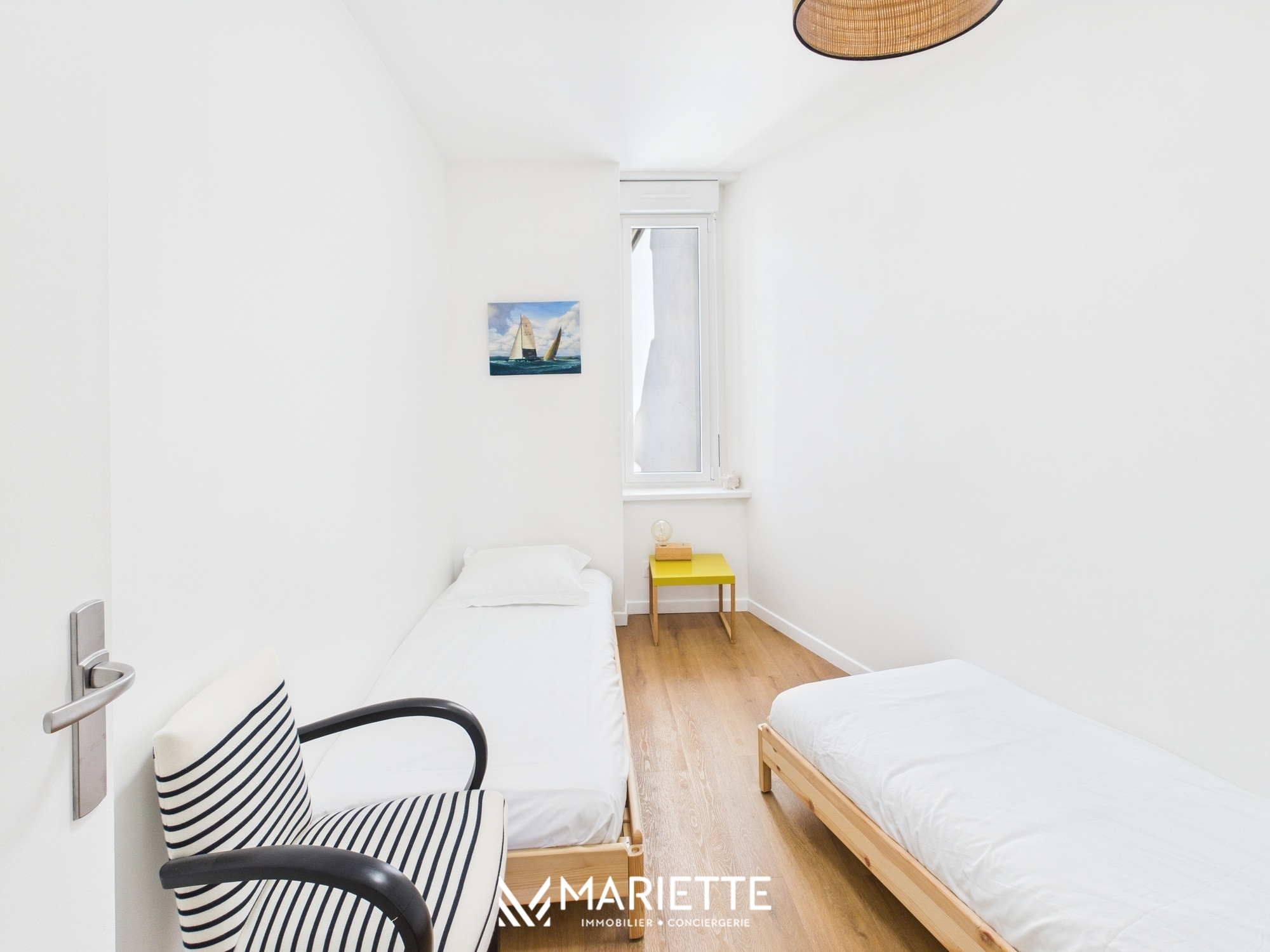 Ce que l’on aime : la situation exceptionnelle de l’appartement, sa proximité avec les plages et le centre-ville. Tout comme ses espaces lumineux et sa décoration, mêlant design moderne et couleurs bretonnes. Ne manquez pas cette opportunité rare à Concarneau !