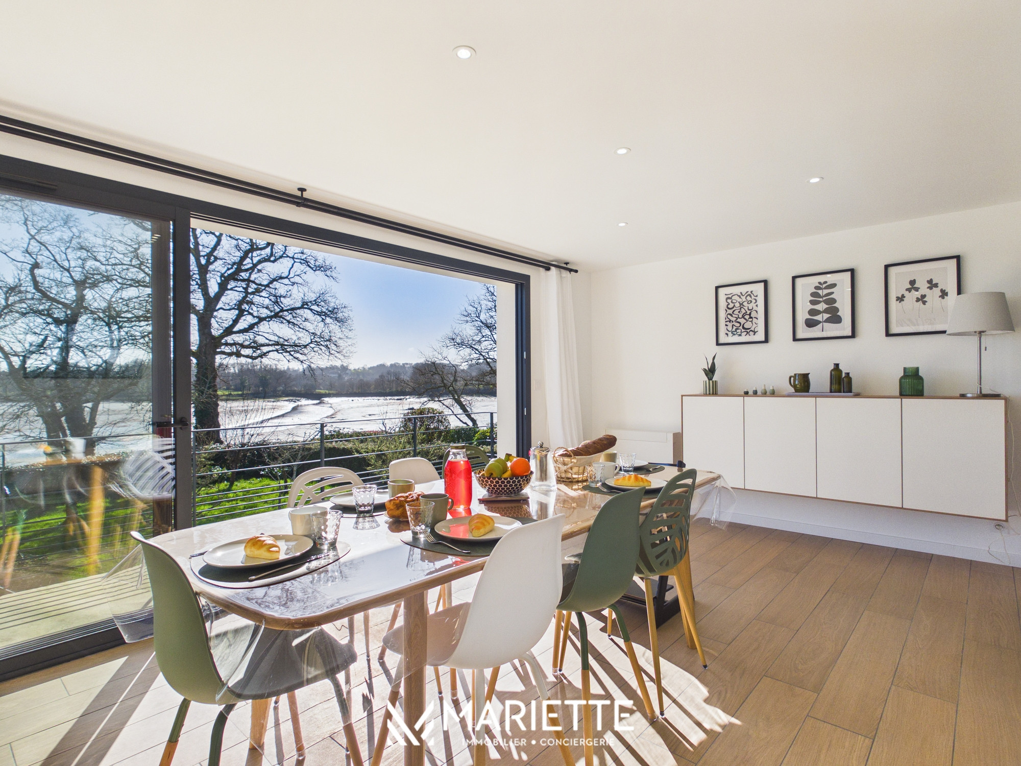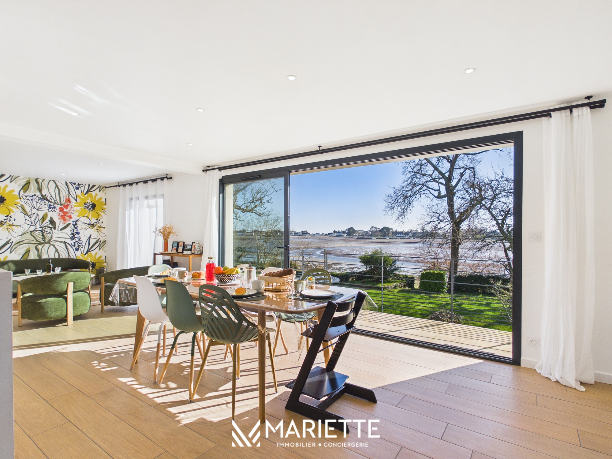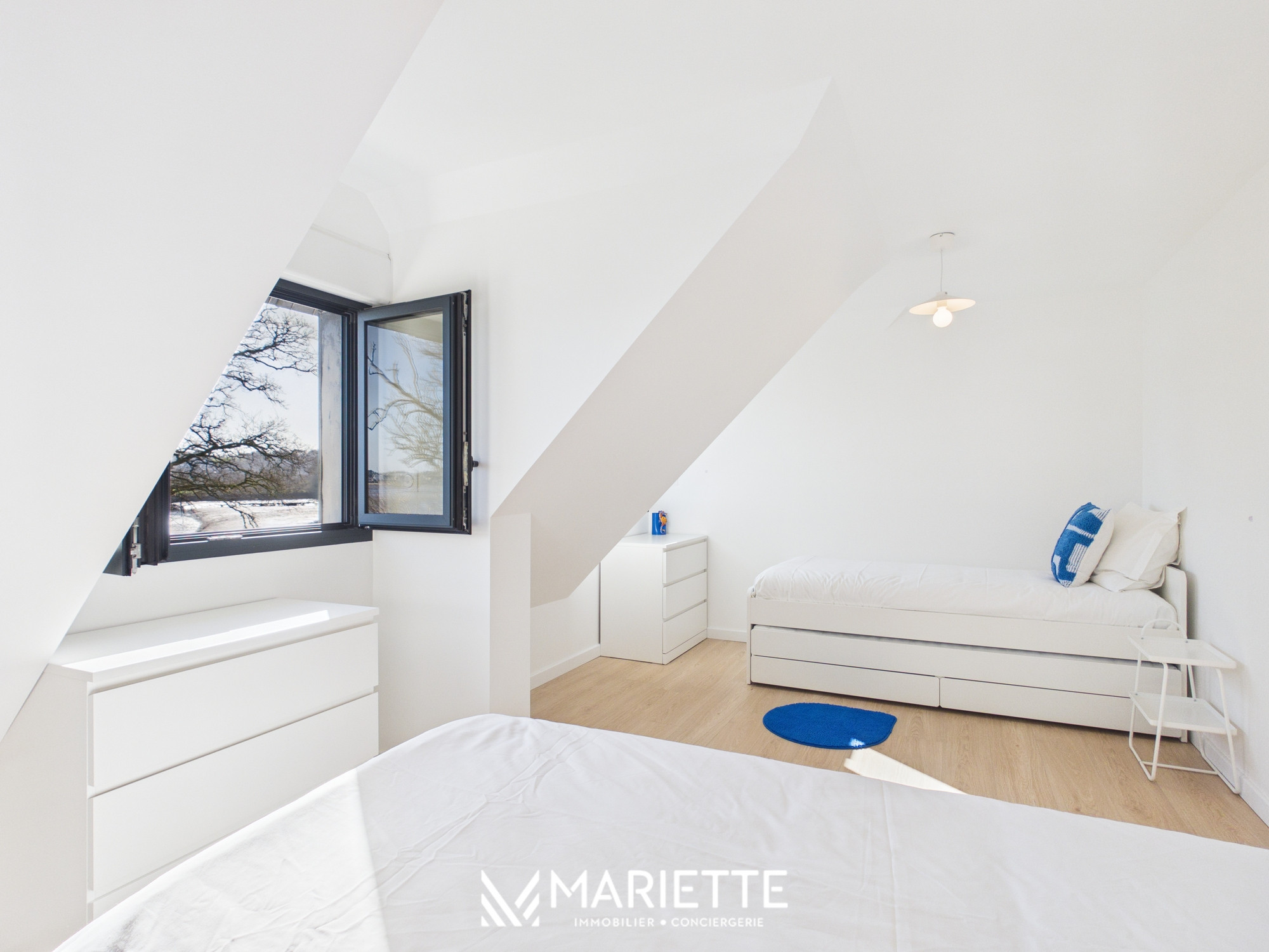 Découvrez FLORA, une superbe maison entièrement rénovée située face à l’Anse de Penfoulic, à La Forêt-Fouesnant, offrant un cadre naturel exceptionnel pour des vacances en famille, entre amis et avec enfants. Ici, la nature rythme les journées et le paysage change au gré des marées. Le célèbre GR34 longe les marais et invite à de magnifiques balades entre terre et mer. Depuis la maison, la vue est vivante et apaisante, les cygnes glissent sur l’eau, les oiseaux animent les marais et le va-et-vient des marées transforme l’anse à chaque instant. À marée haute, l’eau scintille sous la lumière, à marée basse, les bancs de sable et les reflets changeants révèlent toute la beauté sauvage du site. Pensée pour accueillir jusqu’à 6 personnes, cette maison moderne, lumineuse et confortable est idéale pour partager de beaux moments en famille ou entre amis. Dès l’entrée, un espace pratique permet de déposer vos affaires en toute simplicité. La grande pièce de vie baignée de lumière s’ouvre sur une salle à manger conviviale et une cuisine entièrement équipée, parfaite pour préparer et partager des repas après une journée aux plages de La Forêt-Fouesnant. Le vaste salon cosy avec télévision donne accès à une terrasse surélevée offrant une vue imprenable sur l’Anse de Penfoulic et les marais, un véritable belvédère pour profiter du calme environnant. Au rez-de-chaussée, vous trouverez également une buanderie, un WC indépendant ainsi qu’une belle suite parentale avec salle de bain privative comprenant douche et baignoire. À l’étage, deux chambres supplémentaires avec vue sur les marais accueillent famille et amis, accompagnées d’une seconde salle de douche et d’un espace lecture et jeux apprécié des enfants comme des adultes. Les extérieurs constituent un véritable atout avec un jardin non clos et un accès direct au GR34, idéal pour les amateurs de randonnée, de course à pied et de balades en famille. Les plages, notamment Kerleven et Cap Coz, sont rapidement accessibles, tout comme la forêt de Penfoulic et les viviers pour déguster les produits de la mer en toute simplicité. Pour plus de confort, notre conciergerie vous propose en option la location de linge de maison (draps et serviettes) au tarif de 20 € par lit. Les literies se répartissent ainsi : 2 lits en 160x200, 4 lits en 90/200. Cette option est facultative et doit être demandée lors de la réservation. Toute l'équipe de Mariette Conciergerie se fera un plaisir de vous accueillir avec professionnalisme et bienveillance !