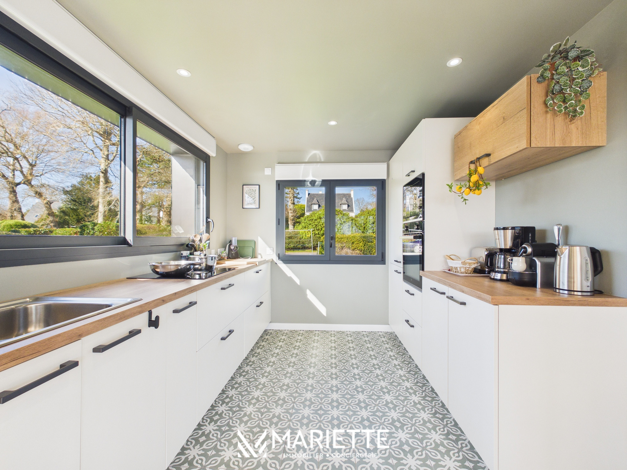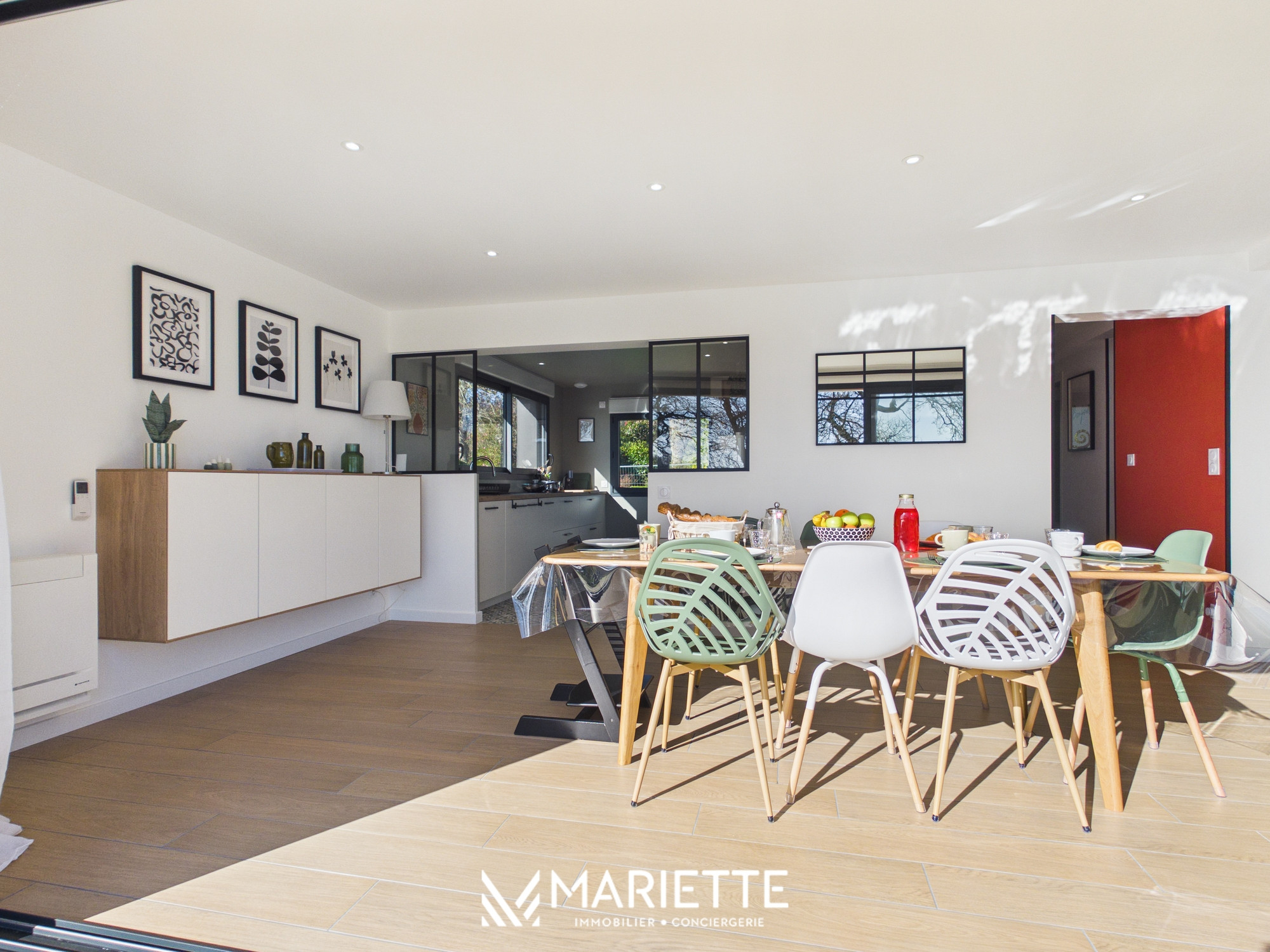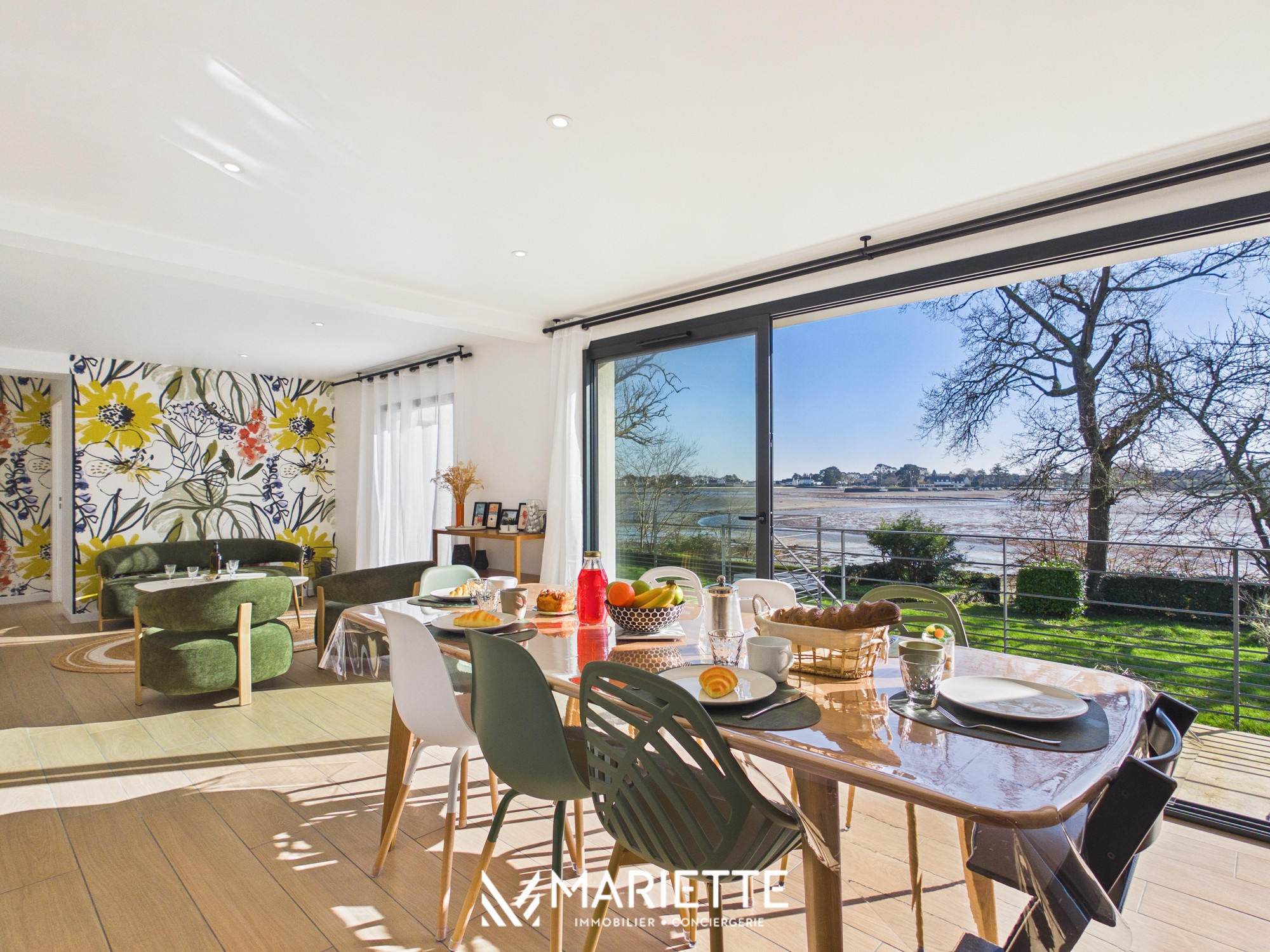 Découvrez FLORA, une superbe maison entièrement rénovée située face à l’Anse de Penfoulic, à La Forêt-Fouesnant, offrant un cadre naturel exceptionnel pour des vacances en famille, entre amis et avec enfants. Ici, la nature rythme les journées et le paysage change au gré des marées. Le célèbre GR34 longe les marais et invite à de magnifiques balades entre terre et mer. Depuis la maison, la vue est vivante et apaisante, les cygnes glissent sur l’eau, les oiseaux animent les marais et le va-et-vient des marées transforme l’anse à chaque instant. À marée haute, l’eau scintille sous la lumière, à marée basse, les bancs de sable et les reflets changeants révèlent toute la beauté sauvage du site. Pensée pour accueillir jusqu’à 6 personnes, cette maison moderne, lumineuse et confortable est idéale pour partager de beaux moments en famille ou entre amis. Dès l’entrée, un espace pratique permet de déposer vos affaires en toute simplicité. La grande pièce de vie baignée de lumière s’ouvre sur une salle à manger conviviale et une cuisine entièrement équipée, parfaite pour préparer et partager des repas après une journée aux plages de La Forêt-Fouesnant. Le vaste salon cosy avec télévision donne accès à une terrasse surélevée offrant une vue imprenable sur l’Anse de Penfoulic et les marais, un véritable belvédère pour profiter du calme environnant. Au rez-de-chaussée, vous trouverez également une buanderie, un WC indépendant ainsi qu’une belle suite parentale avec salle de bain privative comprenant douche et baignoire. À l’étage, deux chambres supplémentaires avec vue sur les marais accueillent famille et amis, accompagnées d’une seconde salle de douche et d’un espace lecture et jeux apprécié des enfants comme des adultes. Les extérieurs constituent un véritable atout avec un jardin non clos et un accès direct au GR34, idéal pour les amateurs de randonnée, de course à pied et de balades en famille. Les plages, notamment Kerleven et Cap Coz, sont rapidement accessibles, tout comme la forêt de Penfoulic et les viviers pour déguster les produits de la mer en toute simplicité. Pour plus de confort, notre conciergerie vous propose en option la location de linge de maison (draps et serviettes) au tarif de 20 € par lit. Les literies se répartissent ainsi : 2 lits en 160x200, 4 lits en 90/200. Cette option est facultative et doit être demandée lors de la réservation. Toute l'équipe de Mariette Conciergerie se fera un plaisir de vous accueillir avec professionnalisme et bienveillance !