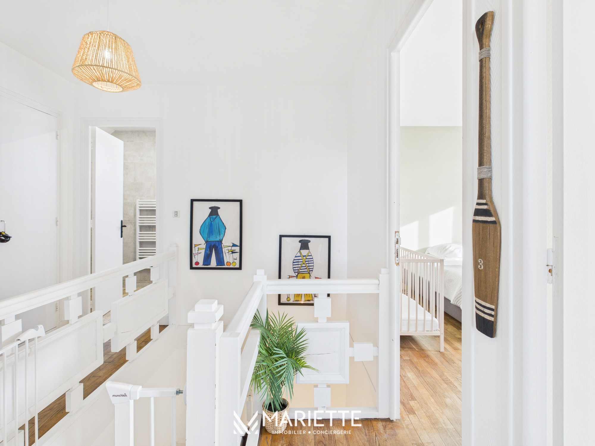 À l’étage, trois belles chambres, chacune décorée dans un thème différent, vous offrent des espaces chaleureux et reposants. Vous y trouverez également une salle de douche moderne avec douche à l’italienne ainsi qu’un second WC.