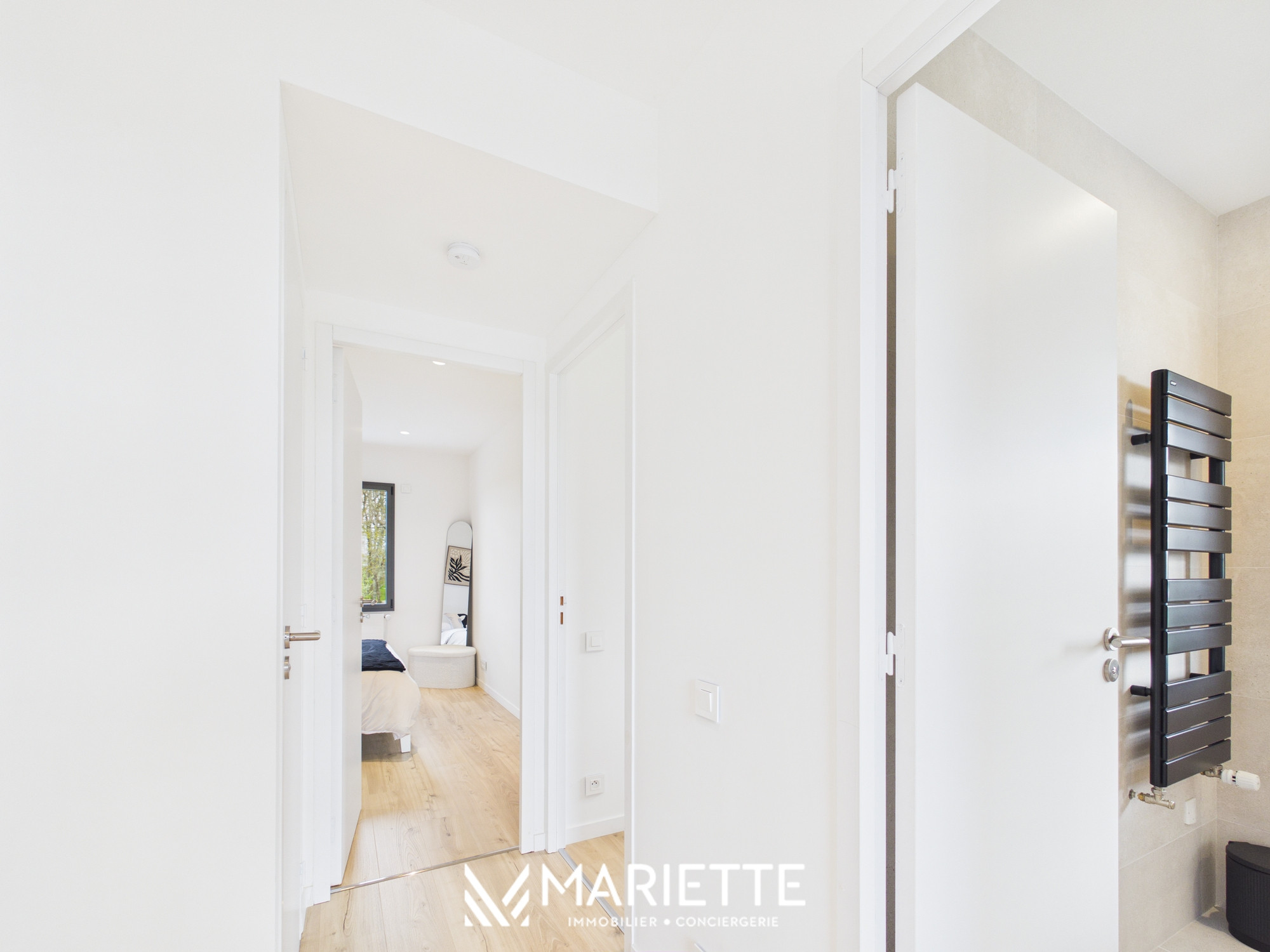 La maison s’ouvre sur un couloir d’entrée qui dessert les différentes pièces de vie. Dès les premiers pas, on sent que chaque espace a été pensé avec goût et convivialité.