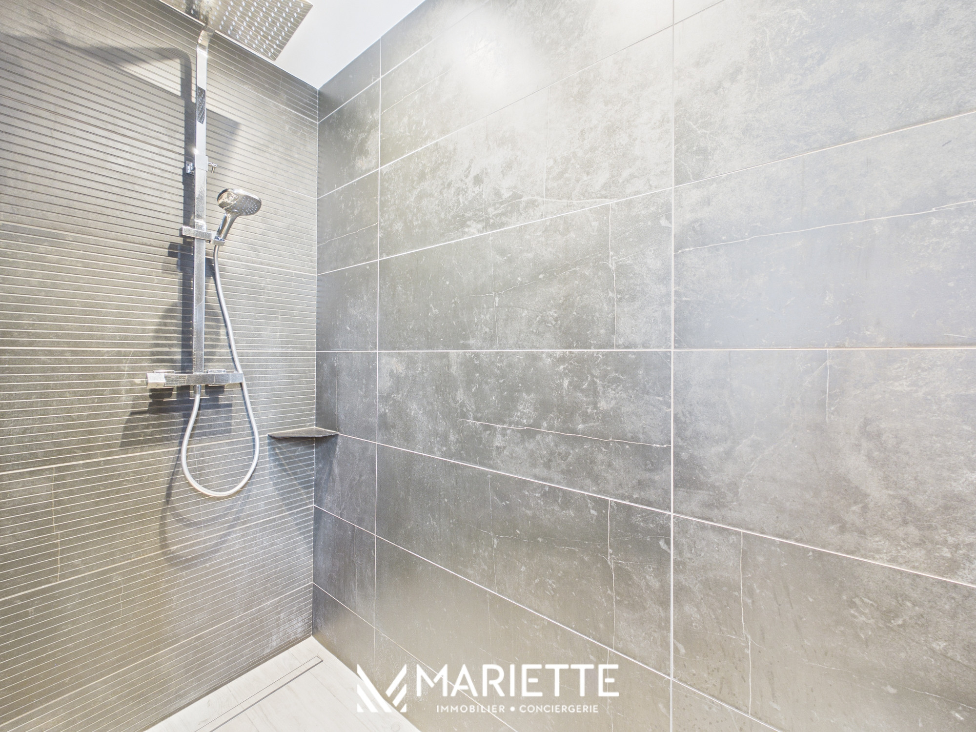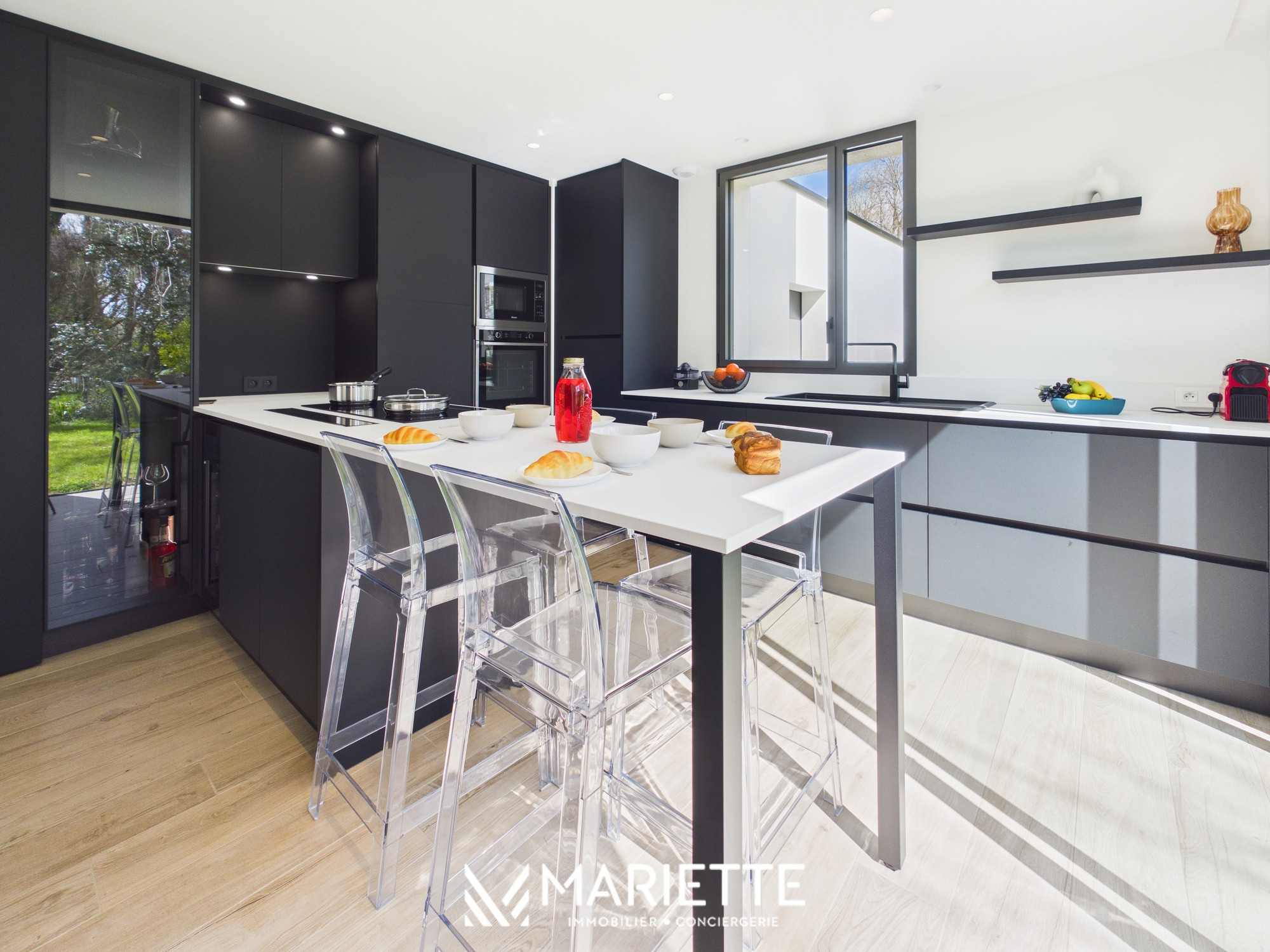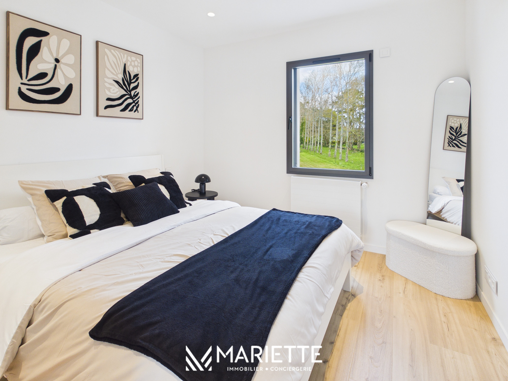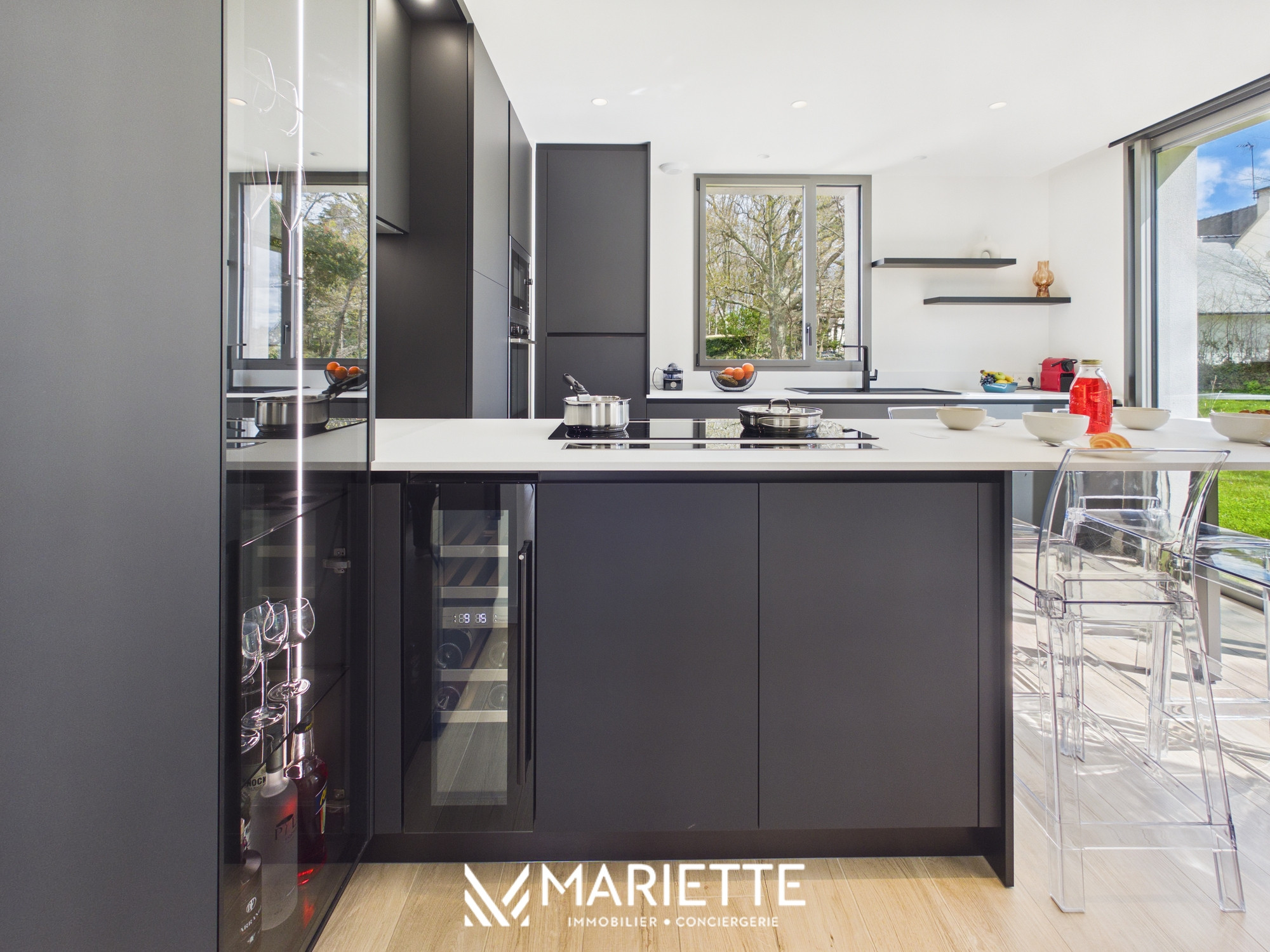 Au rez-de-chaussée, vous découvrirez une entrée avec WC séparés qui s’ouvre sur un vaste espace de vie aux volumes impressionnants, composé d’un salon et d’une salle à manger baignés de lumière grâce à de larges baies vitrées donnant sur le jardin. La cuisine semi-ouverte, entièrement équipée avec des matériaux de qualité, prolonge cet espace convivial et dispose également d’un accès direct vers la terrasse positionnée au Sud. Ce niveau accueille également une magnifique suite parentale avec un grand dressing, une chambre très lumineuse avec baie vitrée ainsi qu’une salle de douche moderne avec douche à l’italienne. À l’étage, la maison propose deux belles chambres confortables ainsi qu’une seconde salle de bain et un deuxième wc séparé permettant à chacun de profiter de son espace en toute tranquillité, que ce soit en famille ou entre amis. À l’extérieur, vous profiterez d’un grand jardin privatif, idéal pour se détendre, partager des repas autour du barbecue ou laisser les enfants jouer en toute sécurité. La maison est parfaitement adaptée aux familles à la recherche de calme et d’espace, mais aussi aux amateurs de nature et de randonnée grâce à sa proximité immédiate avec le célèbre GR34.