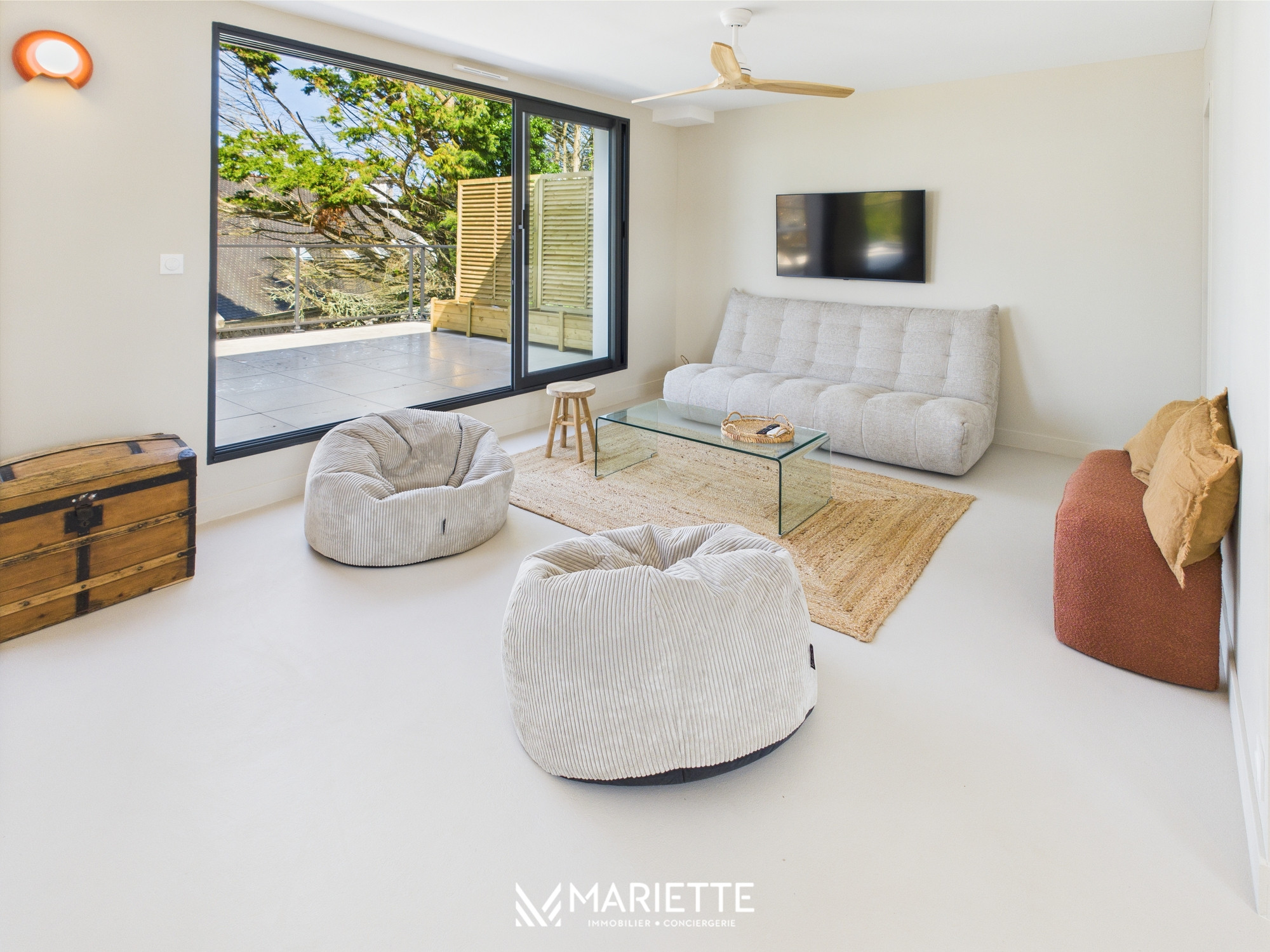 Ce que l'on aime : l’emplacement avec la plage à pied, le jardin clos, les volumes, la décoration