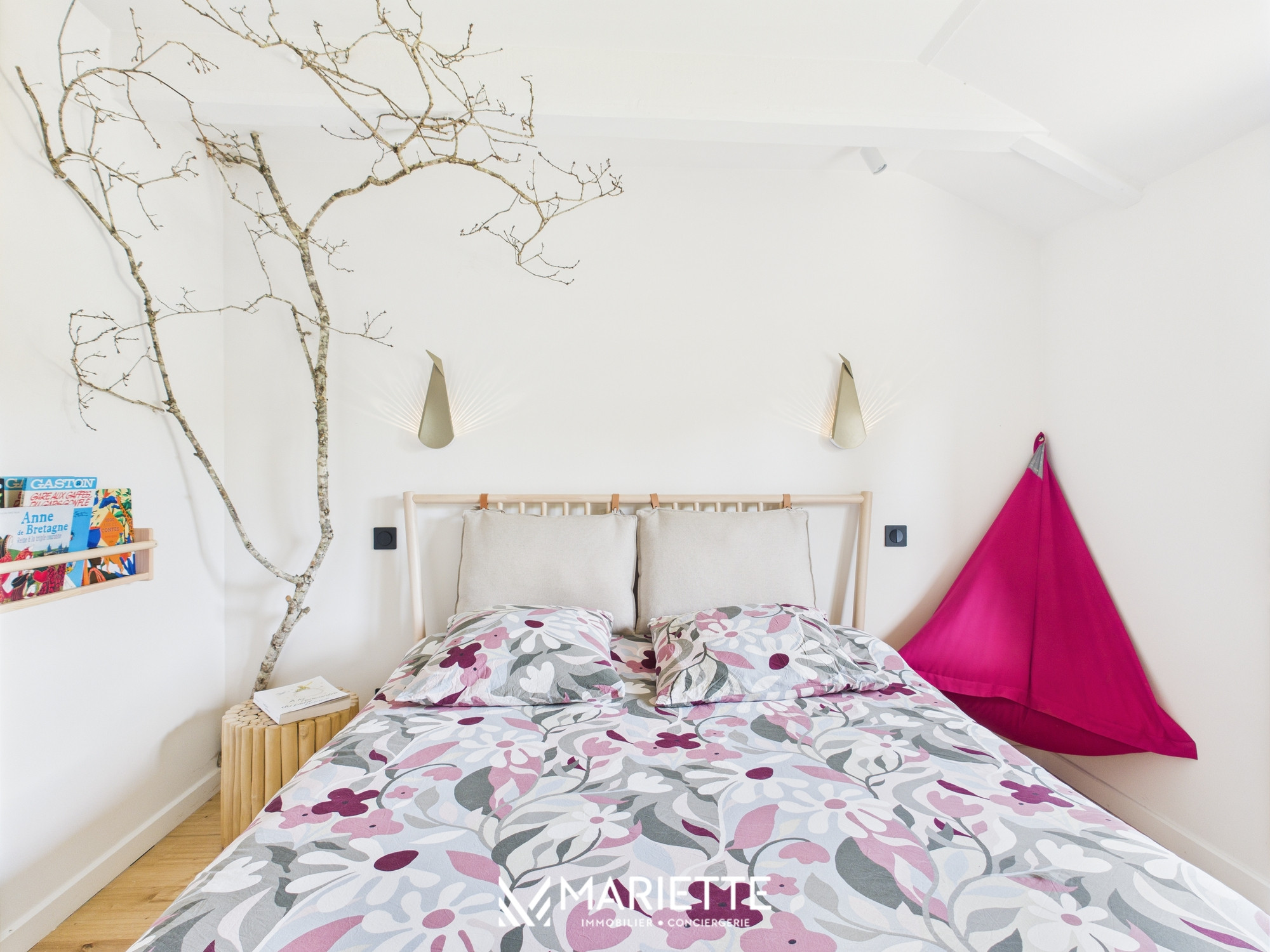 Ce que l'on aime : l’emplacement avec la plage à pied, le jardin clos, les volumes, la décoration
