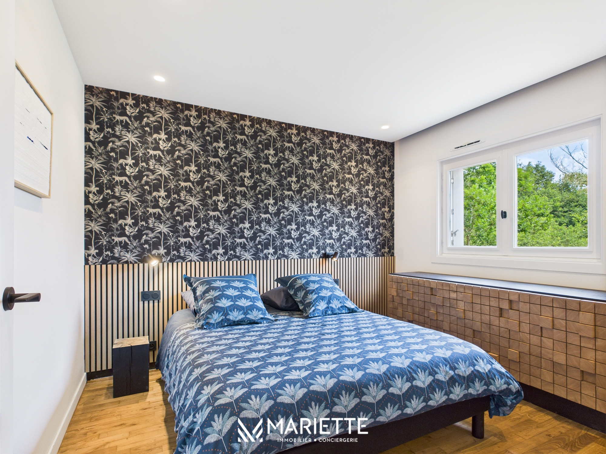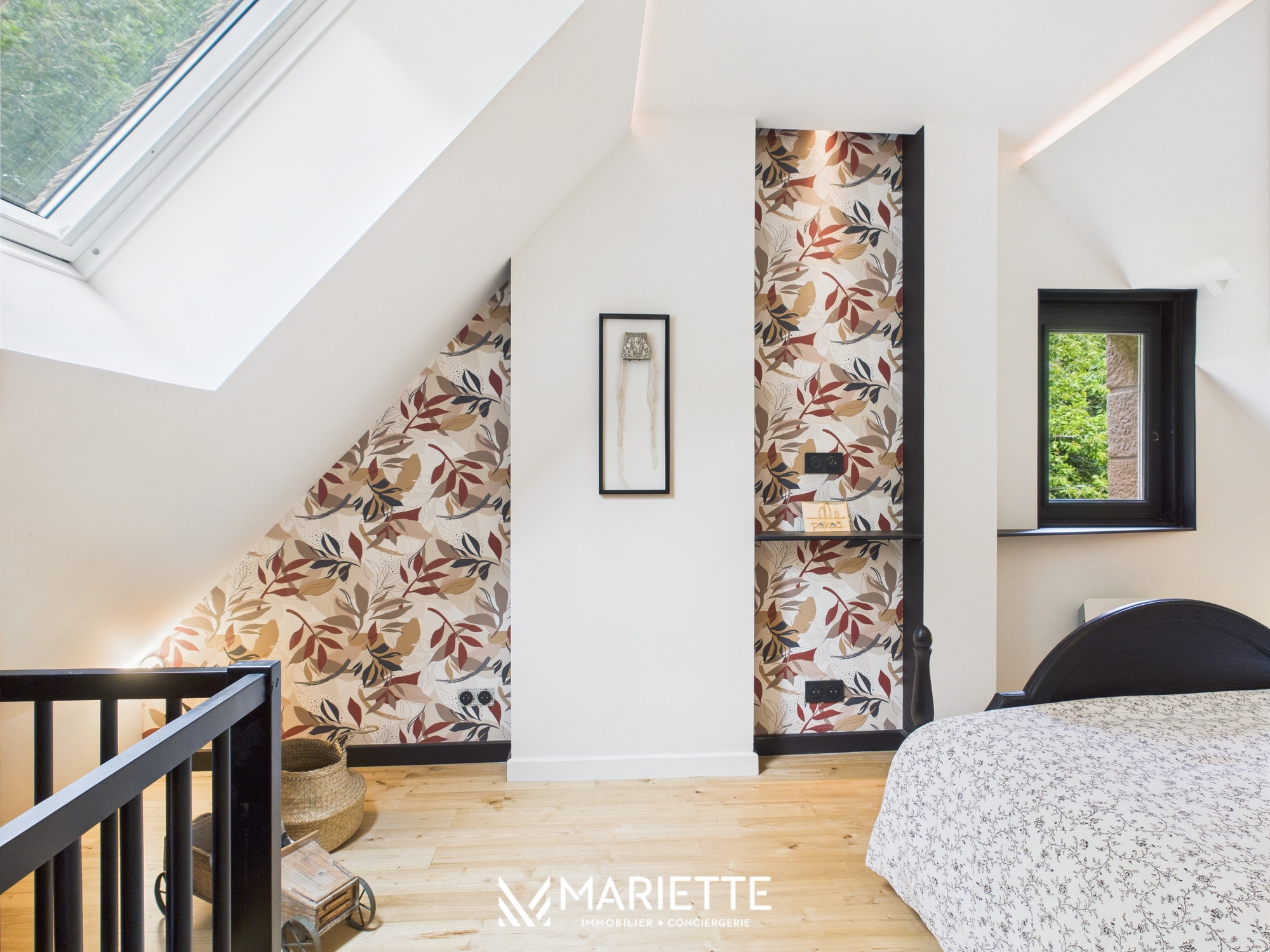 De chaque chambre ressort une atmosphère chaleureuse et unique, grâce à la tapisserie qui orne les murs. A l’étage, vous retrouverez une seconde suite parentale avec salle d’eau attenante, une troisième chambre avec un lit double ainsi que deux chambres enfants composées de lits simples, une salle de bain et un WC viennent compléter cet ensemble.