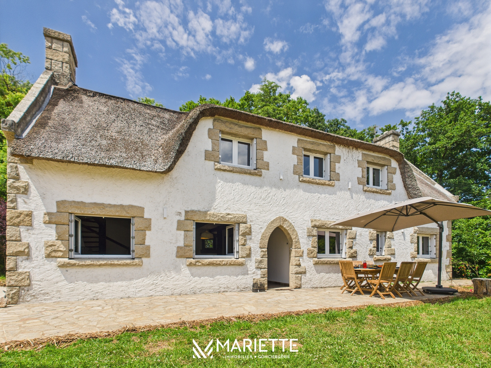 Bienvenue dans cette magnifique chaumière bretonne, entièrement rénovée avec soin par un architecte d’intérieur. Située dans un environnement champêtre et paisible, elle offre le charme authentique de la Bretagne allié à un confort moderne haut de gamme. Matériaux nobles, mise en lumière subtile, volumes repensés avec élégance : tout ici a été pensé pour créer une atmosphère chaleureuse et raffinée.
