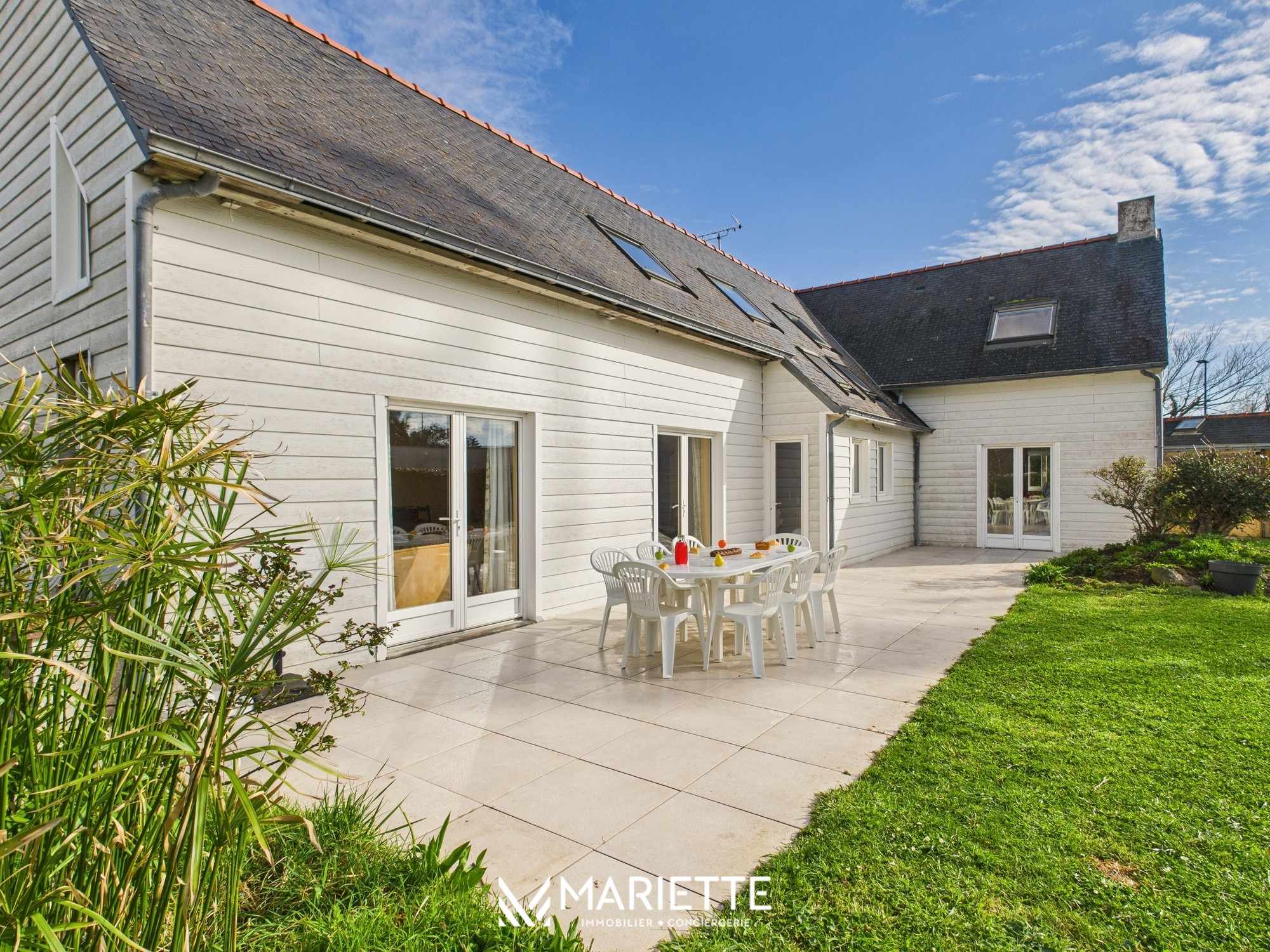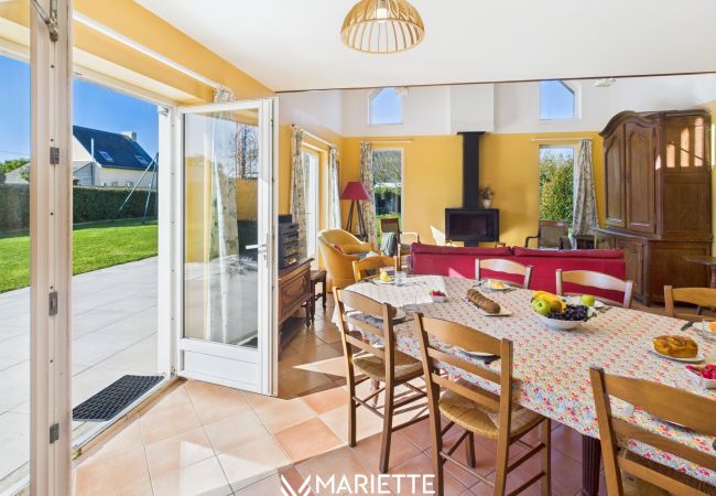 Ce que l’on aime : la situation idéale de la maison près des plages, des restaurants et de la pointe de Trévignon, son grand jardin, ses volumes généreux et son exposition qui baigne les espaces de vie de lumière.