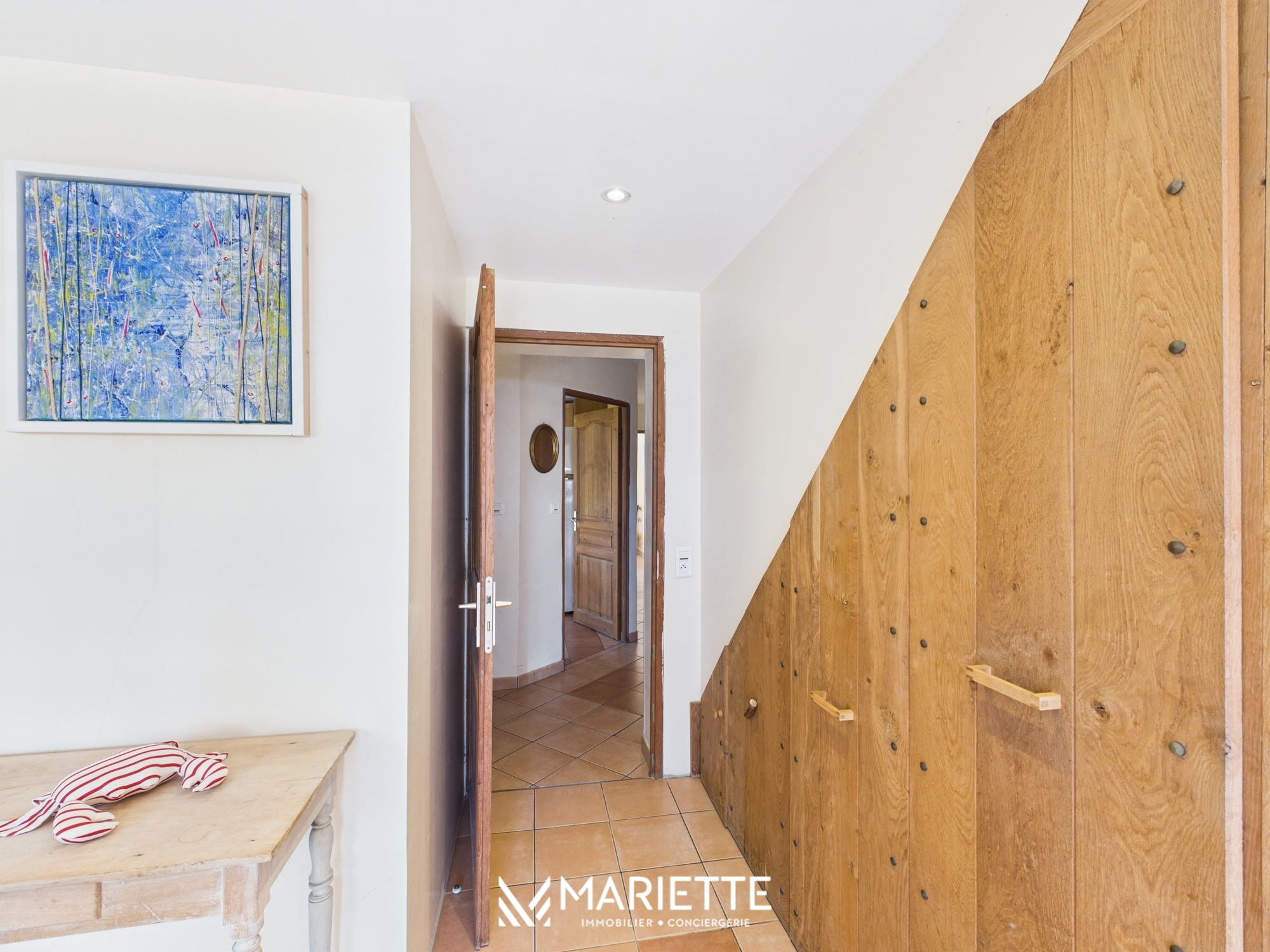 En poursuivant votre visite, vous emprunterez un couloir menant aux espaces de vie de la maison.